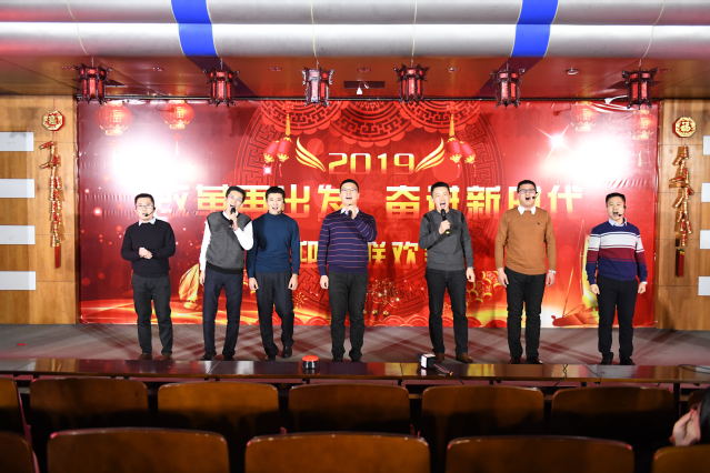 联欢会以《春到福来》歌舞开场,融入歌曲、舞蹈、太极拳、情景剧、诗朗诵、服装展示等多种艺术形态,迎接2019年的到来,向改革开放40年献礼。朗诵《辉煌这一年》、搏击操啦啦操《2019重拳出击》、太极拳表演 、服装展示《艺Show》、歌曲《我的小宝贝》、歌曲串烧《回忆青春》、情景剧《匠心》等精彩纷呈的节目轮番登场,联欢会在《我们的新时代》的歌舞表演中落下帷幕。