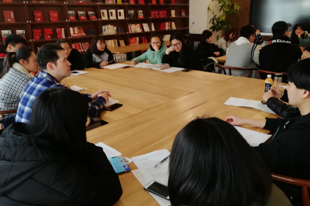 本网讯(基础部 于德江)3月7日下午,2019年第一期英语角在图书馆“传统文化书屋”举行。本期的主题是“Students’study plan in new semester ”,外籍教师和同学们围绕这一主题展开热烈而积极的讨论。