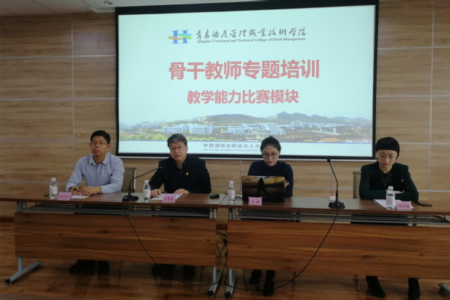本网讯(教务处 王赵慧)5月12日,教务处教师发展中心在行政楼四楼会议室举行骨干教师专题培训,邀请全国职业院校教学能力比赛一等奖获得者北京工业职业技术学院李男、潍坊职业学院安敏主讲。学院副院长宫恩龙,教务处副处长衣文娟,学院2019年教学能力比赛备赛选手约70余人参加培训会。培训由教务处处长唐文君主持。