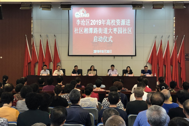 本网讯(继续教育学院 廖金城)近日,湘潭路街道高校资源进社区启动仪式在大枣园社区会议室举行,李沧区教体局总督学孙丽霞,我院继续教育学院院长曲洋等相关人员,以及大枣园社区的居民代表参加启动仪式。