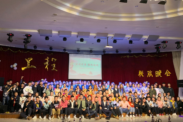 本网讯(酒店工程学院 王艳)10月28日晚,酒店工程学院团总支在大学生活动中心举行“盛世中华 扬帆起航”联欢晚会,酒店工程2019级全体学生参加。