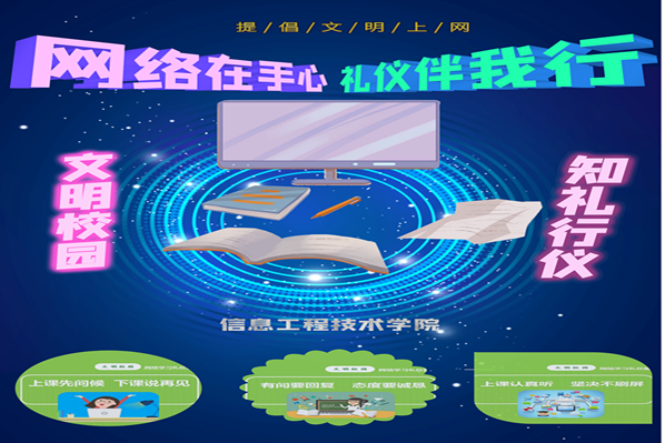 本网讯(信息工程技术学院 李珊荃)日前,按照学院团委工作安排,信息工程技术学院团总支针对网络教学的大背景,开展了为期21天的“网络在手心、礼仪伴我行”主题团日活动,后期将依托“小白杨新媒体工作室”平台打造网络文明礼仪之歌,不断加强大学生网络礼仪教育,提升全体青年团员的网络礼仪素养。