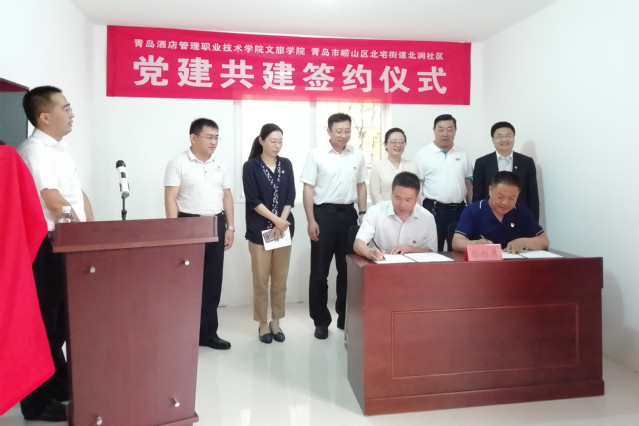 本网讯(文旅学院 朱丽男)6月23日上午,文旅学院与青岛市崂山区北宅街道北涧社区党建共建启动仪式在北涧社区村委会举行,双方签署党建共建协议,共建党员服务站和大学生创新创业孵化基地。