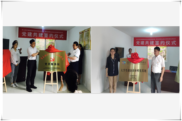 组织人事处处长邱心显与北宅街道人大办公室主任李泽洛为党员服务站揭牌;团委书记李柯与北宅街道党委委员王永秀为大学生创新创业孵化基地揭牌。随后双方针对研学基地打造、亲子旅游项目建设进行了首场研讨会。