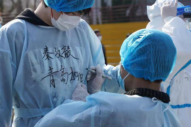 全体在校人员核酸检测逐轮进行,人数多、任务重。酒店管理学院学生党员纷纷报名、主动请缨,穿上防护服,加入核酸检测志愿服务队。学生党员志愿者们承担了布置场地、维护秩序、信息采集录入等工作,助力校园疫情防控。