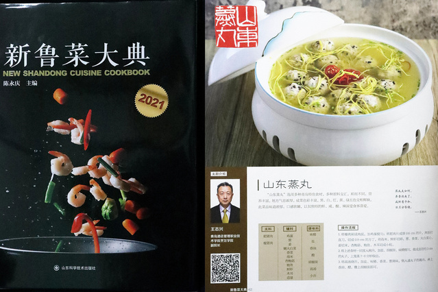 本网讯(烹饪学院 赵捷)近日,由中央广播电视总台山东总站、山东省文化和旅游厅、山东省旅游饭店协会主办的新鲁菜创新大赛颁奖典礼暨《新鲁菜大典》首发仪式活动在济南举行,由我校烹饪学院副院长王志兴主持的参赛菜品“山东蒸丸”入选《新鲁菜大典》,参赛菜品视频在“央视频”APP同步展出。