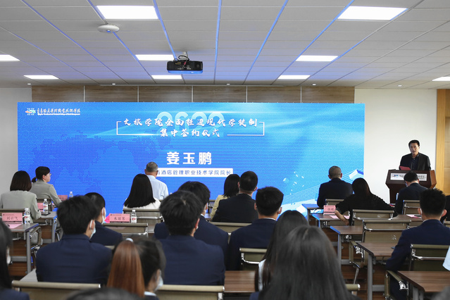 文旅学院按照“双高计划”建设要求,在国家级现代学徒制试点的基础上,全面推进现代学徒制工作。建立“现代学徒制+产业学院”的中国特色现代学徒制培养新模式,现已开设6个现代学徒制班级,吸引企业导师41位,参与学徒152人,提高了文旅职业人才素质,将现代学徒制办出了文旅产业和专业特色。
