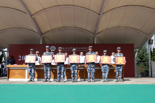 党委副书记韩西清宣读了军训表彰名单,希望受到表彰的先进集体和优秀个人,继续发扬在军训中形成的顽强拼搏的精神风貌,再创佳绩。与会领导为获表彰的单位代表颁奖。