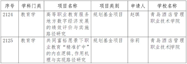 本网讯(科研发展处)近日,教育部公布了2023年度教育部人文社会科学研究一般项目立项名单,我校赵琪教授主持的《高等职业教育服务地方数字经济发展的绩效评价与实施路径研究》和徐莉教授主持的《共同富裕愿景下职业教育“精准扩中”的内在逻辑、作用机理与实现路径研究》2项课题喜获立项,立项数量位居全国高职院校前列。这是继2021年我校首次立项教育部人文社会科学研究专项项目(高校辅导员研究专项)后的又一历史性突破。