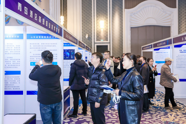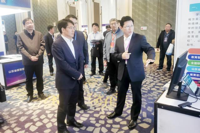 大会同期举办山东省智慧教育示范区(校)建设成果展,我校作为“智慧教育示范校”创建单位参展。邓云锋莅临我校展位参观指导,对我校网络学习空间普及、专业数字化转型、大数据赋能学校治理等方面的成果表示肯定。