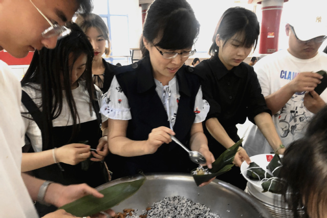 6月10日,基础教学部组织学生在西餐厅二楼开展“浓情端午包粽子”活动,学生们用新鲜竹叶、香甜糯米包制粽子,体验传统美食制作,感受传统文化。