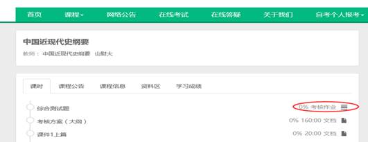 电子作业提交方法:点击我的学习,选择进行作业提交的课程,选择《综合测试题》,会提示选择作业形式,选择电子作业,下载试卷,答题完毕后将附件上传。任选三套完成上传即可。显示100%说明作业已经完成提交。