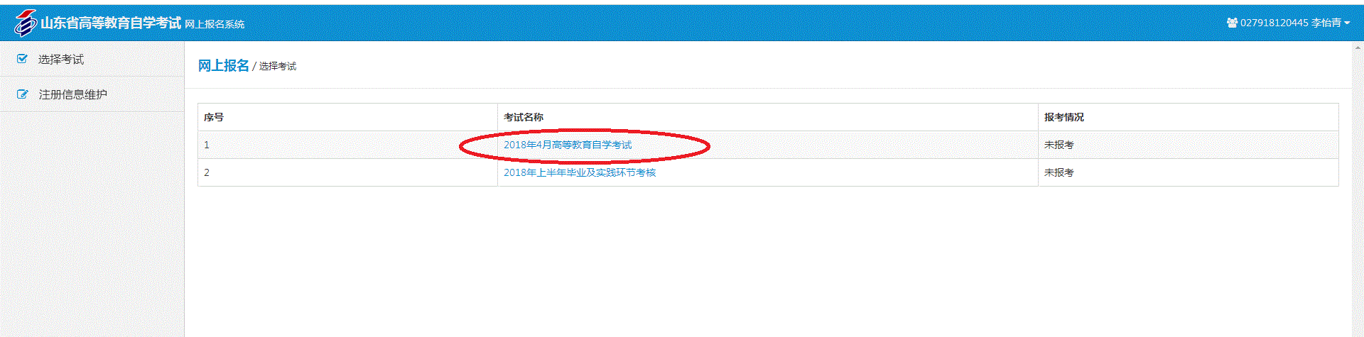 (10)选择红色圈出区域“2018年4月高等教育自学考试”
