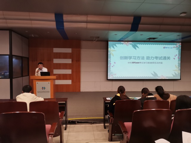 王老师从数据库的研发背景、注册登录、使用方法、注意事项四个方面做了讲解,详细介绍了VIPExam考试学习资源库的主要功能和所包含的丰富资源,现场气氛十分热烈。